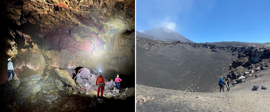 L’Etna, uno dei vulcani geologicamente più diversi al mondo, rappresenta un laboratorio naturale di eccezionale valore per gli studi di analogia planetaria. I suoi prodotti vulcanici coprono infatti un ampio spettro composizionale, paragonabile sia ai terreni lunari di tipo mare sia a quelli degli altopiani. In questo studio, il team ha analizzato depositi piroclastici e campioni basaltici provenienti da tre siti: il cratere a pozzo della Cisternazza e i tunnel lavici di Monte Nunziata e Tre Livelli.