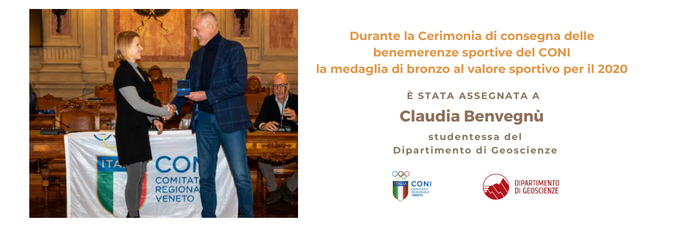 Claudia Fabiola Benvegnù, second-year student of the Bachelor's Degree at the Department of Geosciences and Canadian canoeing champion, received the CONI Bronze medal for sporting merits.