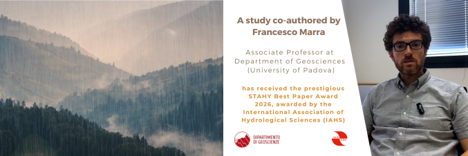 The paper, entitled “Predicting extreme sub-hourly precipitation intensification based on temperature shifts” and published in Hydrology and Earth System Sciences, was selected by the International Association of Hydrological Sciences for the STAHY Best Paper Award 2026. The study was conducted in collaboration with Marika Koukoula (SNSF, Switzerland), Antonio Canale (University of Padua), and Nadav Peleg (University of Lausanne). The award will be formally presented at the STAHY 2026 Workshop in Victoria Falls, Zimbabwe.