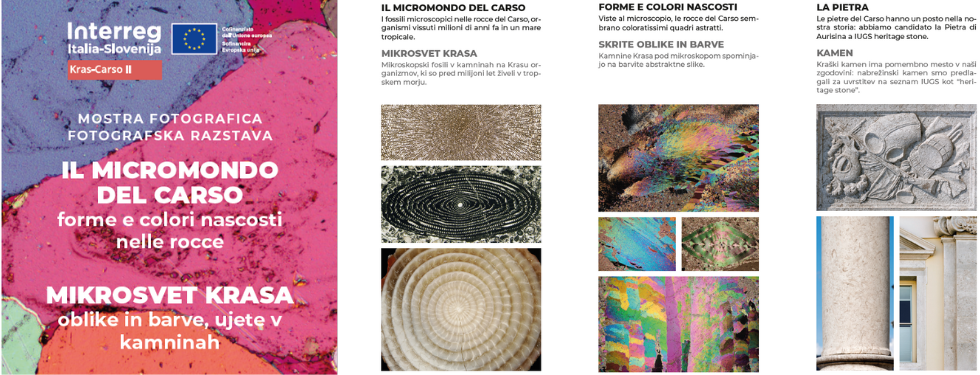 Več kot 50 fotografij različnih avtorjev, med njimi tudi prof. Bernardo Cesare, zmagovalec številnih mednarodnih natečajev, vas bo popeljalo v svet kamnin Krasa skozi mikroskop in razkrilo fosile, ki se včasih skrivajo v njih.