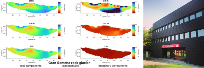 In this talk, I will revise ongoing approaches in the investigation of alpine permafrost using geophysical electrical methods and demonstrate the importance of accounting for interfacial conductivity in the case of frozen ground, as presented in Figure 1. Moreover, I will present some of our recent results regarding the application of transient electromagnetic soundings to delineate ice‐rich areas in alpine permafrost. To this end, we propose a stochastic modeling and inversion approach explicitly considering interfacial conductivity that permits us to evaluate the uncertainty of the resulting model parameters.