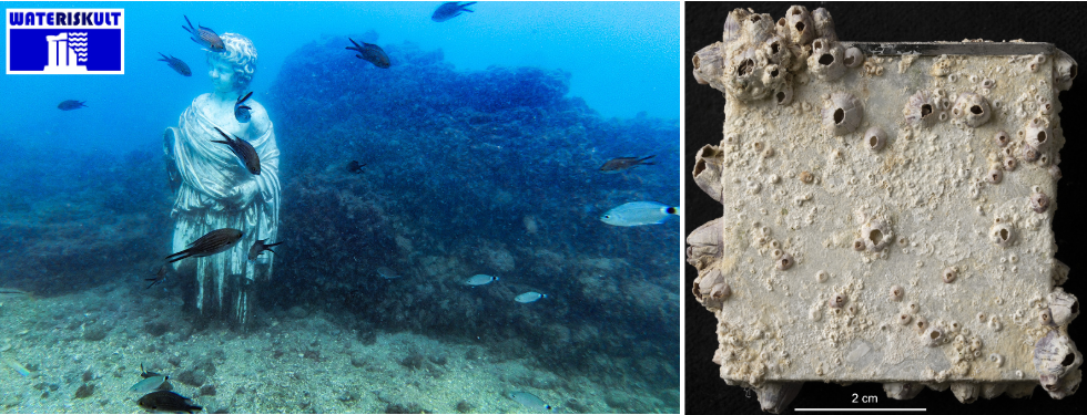 WATERISKULT provides the first quantitative assessment of the climate change risk to underwater cultural heritage, with a focus on archaeological stone. The project aims at predicting the effects of key-factors of climate change on stone deterioration, i.e. ocean acidification and increasing intensity and shifts of extreme weather events (storms); by laboratory simulations, field exposure tests, and monitoring of heritage stones, the effects of different levels of CO2 in seawater and high-intensity ocean currents are investigated. This project also aims at exploring the causes and effects of current deterioration in underwater archaeological sites, constrained by diverse stone properties and submarine environments, specifically in the Mediterranean region. Downscaled trends and patterns of observed and predicted stone decay are obtained, based on the (micro)structural and compositional changes and biodeterioration. This research adopts an interdisciplinary approach involving petrography/mineralogy, oceanography, analytical chemistry, marine biology, hydraulic engineering, and underwater archaeology.