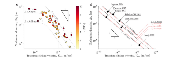 Coseismic rupture is commonly preceded by stable fault slip, which may accelerate into dynamic rupture as the slip front reaches critical velocities. However, the physical conditions that govern this nucleation process remain poorly constrained.