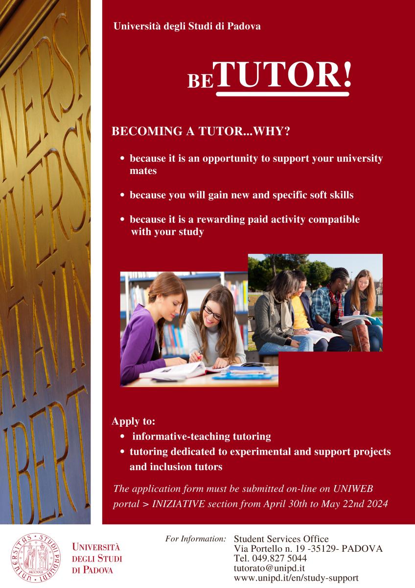 Tutors are students enrolled in single-cycle degrees, Master's degrees, doctoral degrees or specialisation degrees, and they receive special training so that they can perform their role effectively.