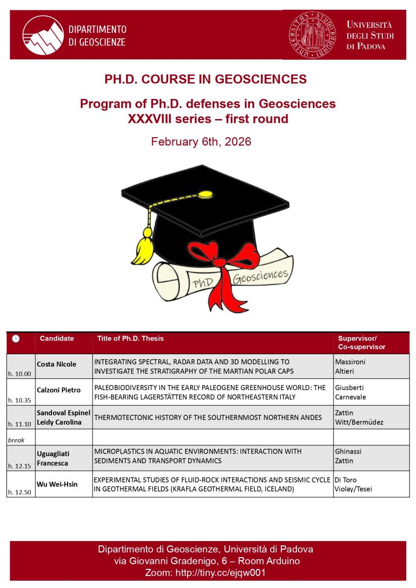 Ph.D. Course in Geosciences - Discussione tesi di dottorato XXXVIII Ciclo - 6 Febbraio 2026