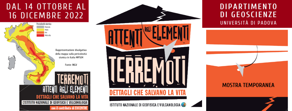 Con la mostra “Terremoti: attenti agli elementi! Dettagli che salvano la vita”, creata in occasione del Festival della Scienza di Genova 2019 e divenuta itinerante (con allestimenti in varie città di Italia), si analizzano le caratteristiche dei terremoti, con particolare attenzione a quegli aspetti che riguardano l’ingegneria, l’interazione tra i tipi di terreno e i fenomeni di amplificazione sismica, le caratteristiche degli edifici e la loro risposta alla sollecitazione ricevuta; tutti aspetti poco noti sui terremoti ma importanti per la nostra sicurezza.